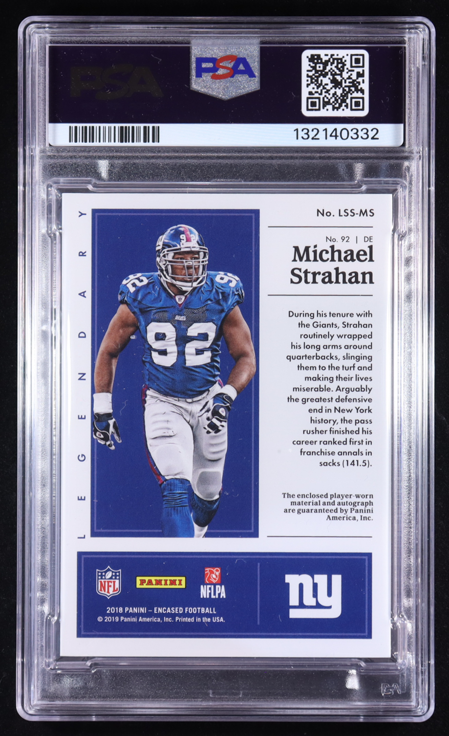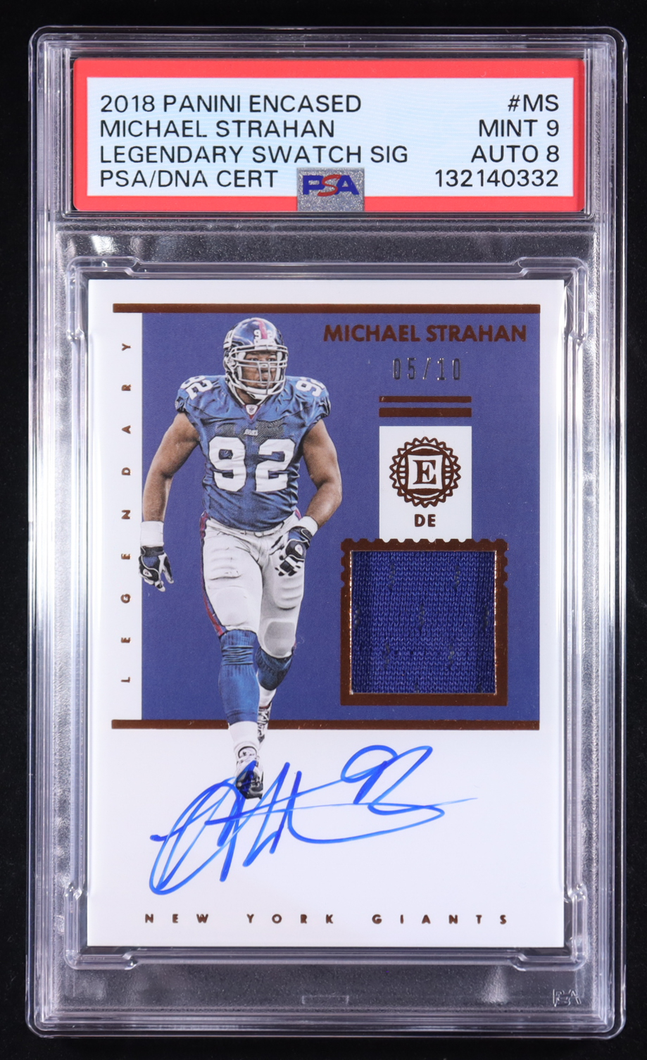 Michael Strahan 2018 Panini Encased Legendary Swatch Signatures #LSSMS #05/10 (PSA 9 | Autograph Graded 8)