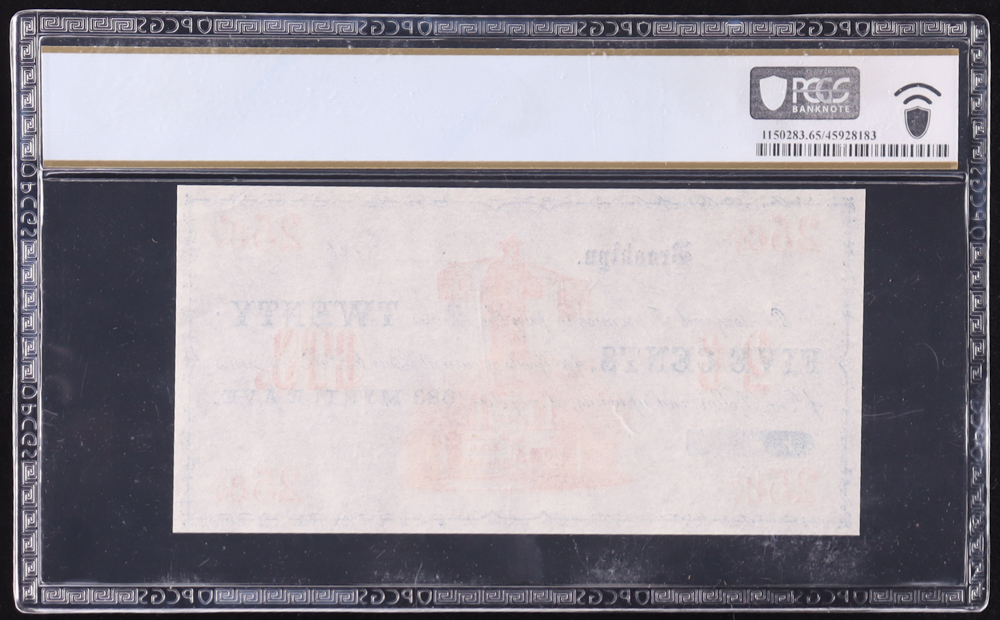 1864 Brooklyn, New York 25 Cents Currency Note - Hyson & Ward, Tea Importer (PCGS Gem Unc 65 PPQ)