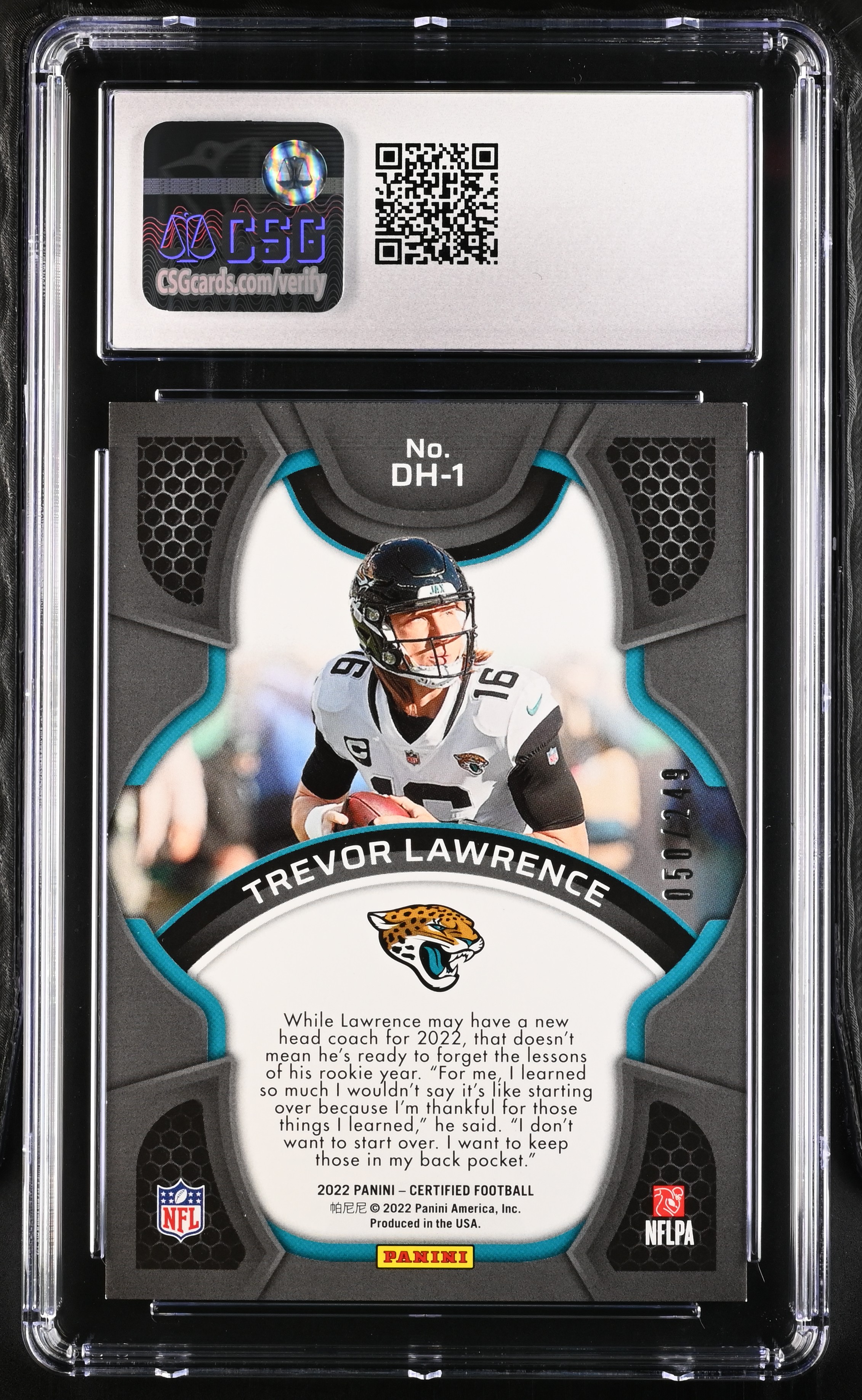 Trevor Lawrence 2022 Panini Certified Dark Horses Mirror Bronze #DH-1 #050/249 (CGC 9)