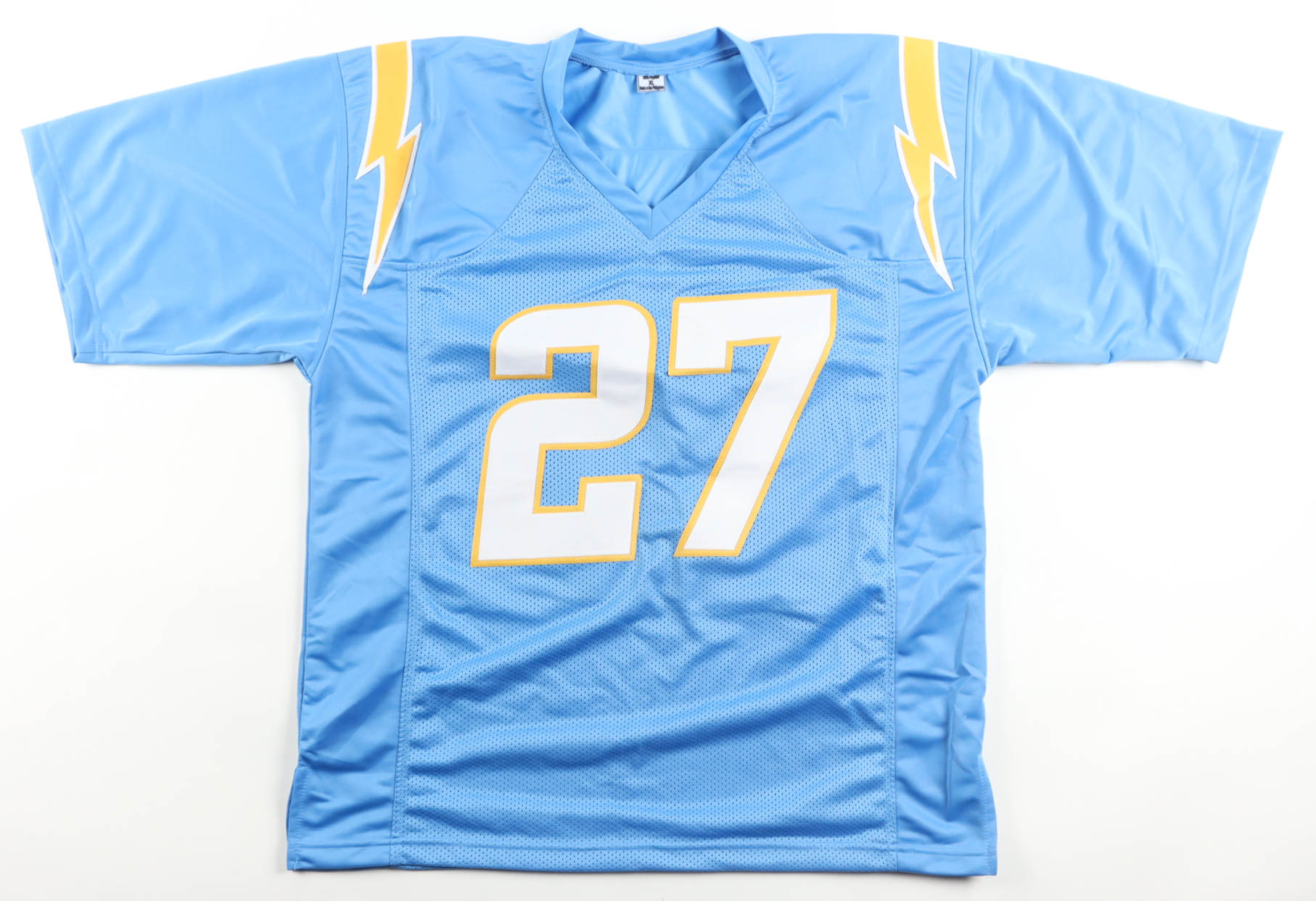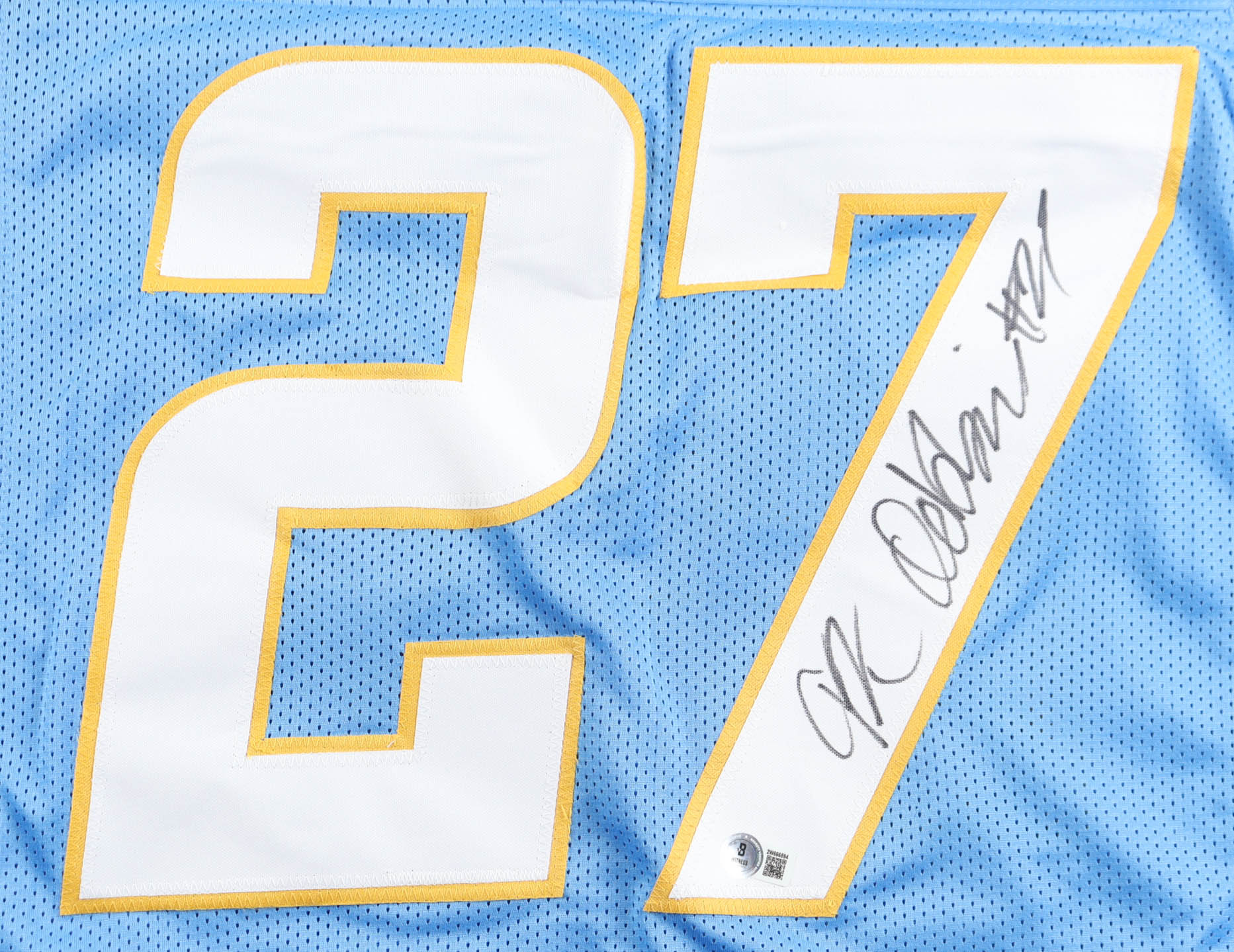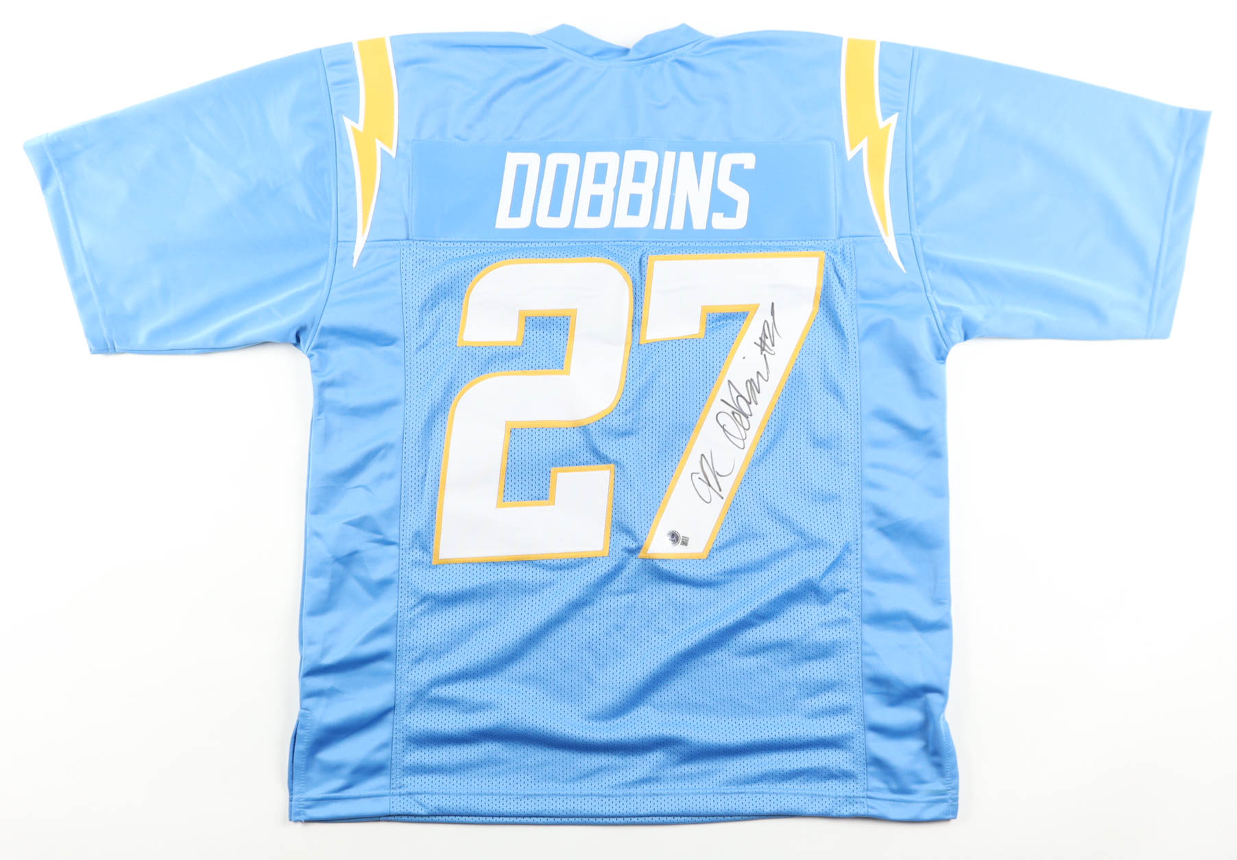 Custom jersey with everything sewn on, size XL. Has been hand-signed by J. K. Dobbins.