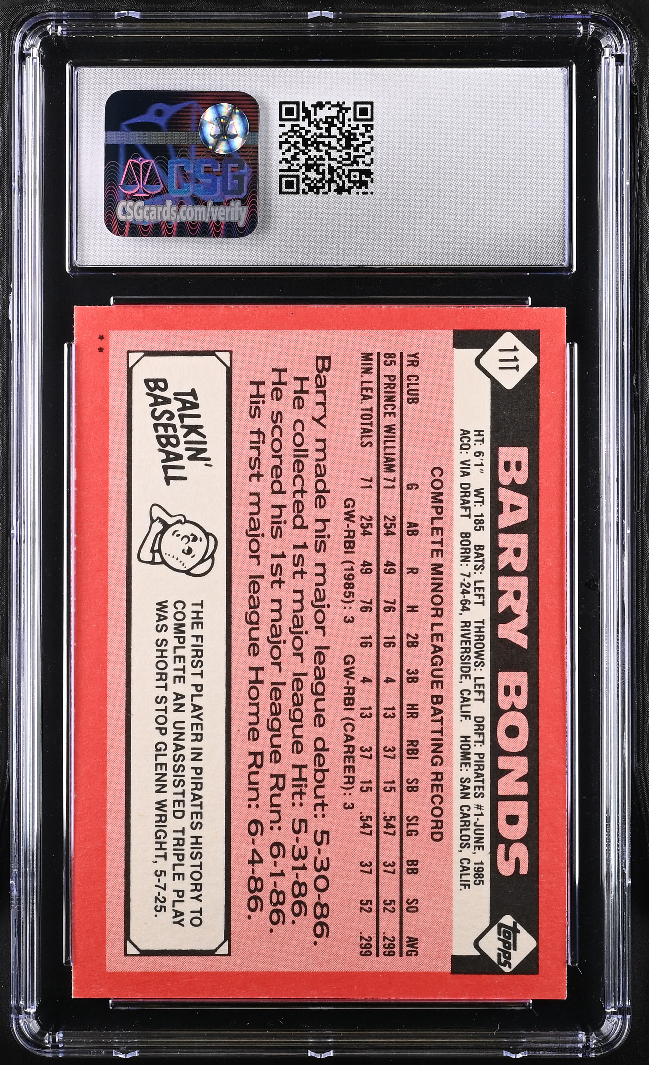 Barry Bonds 1986 Topps Traded #11T RC (CSG 8.5)