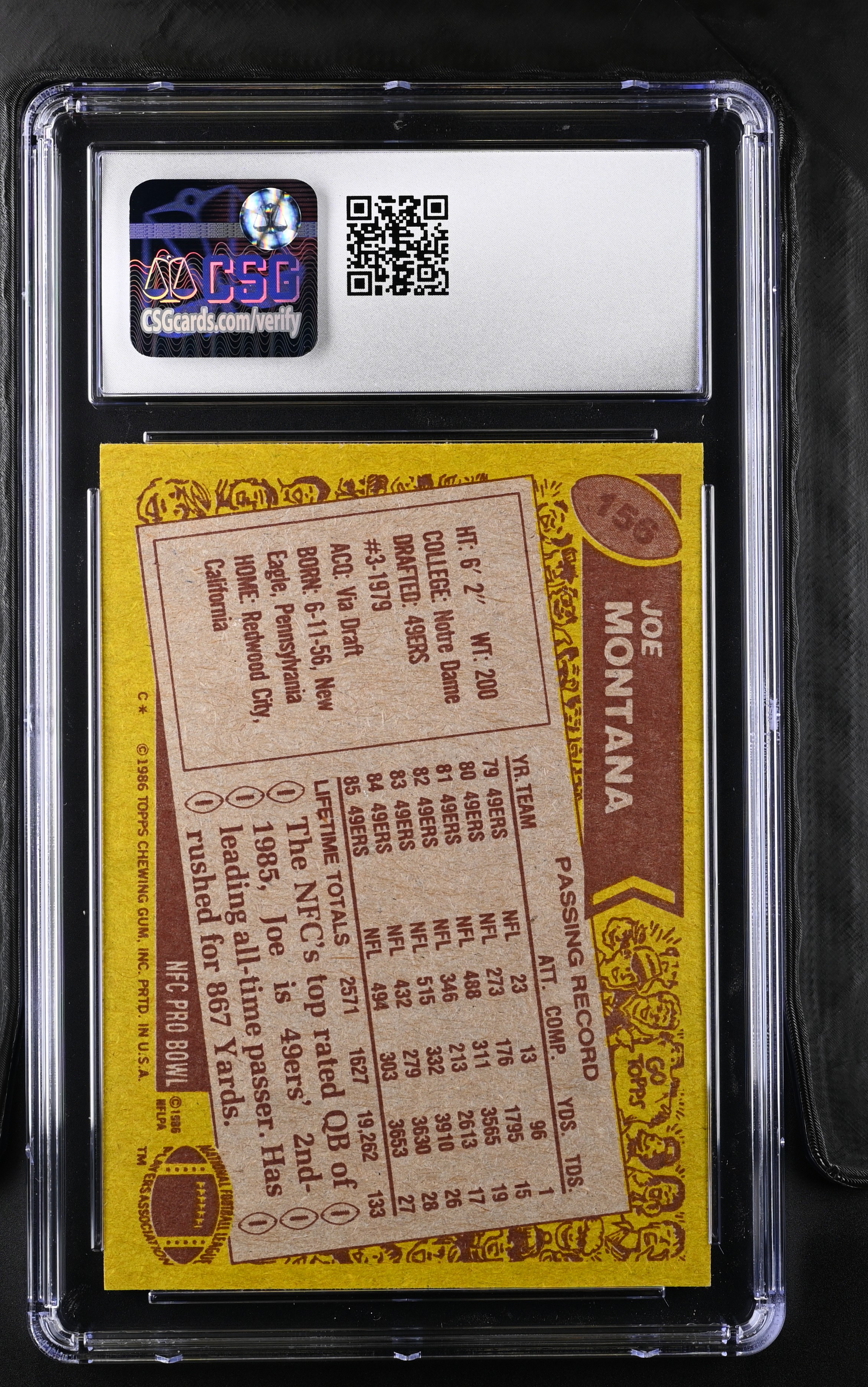 Joe Montana 1986 Topps #156 (CSG 7.5)