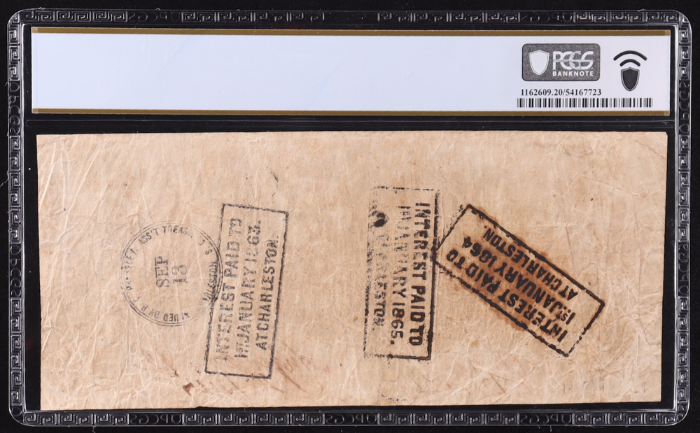 1862 Confederate $100 Currency Note, T-40 4th Issue w/ Charleston, SC Circulation Date Stamp (PCGS Very Fine 20)