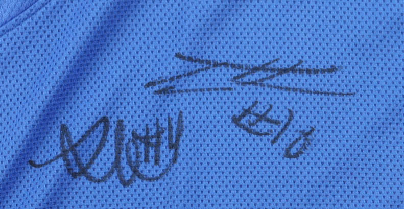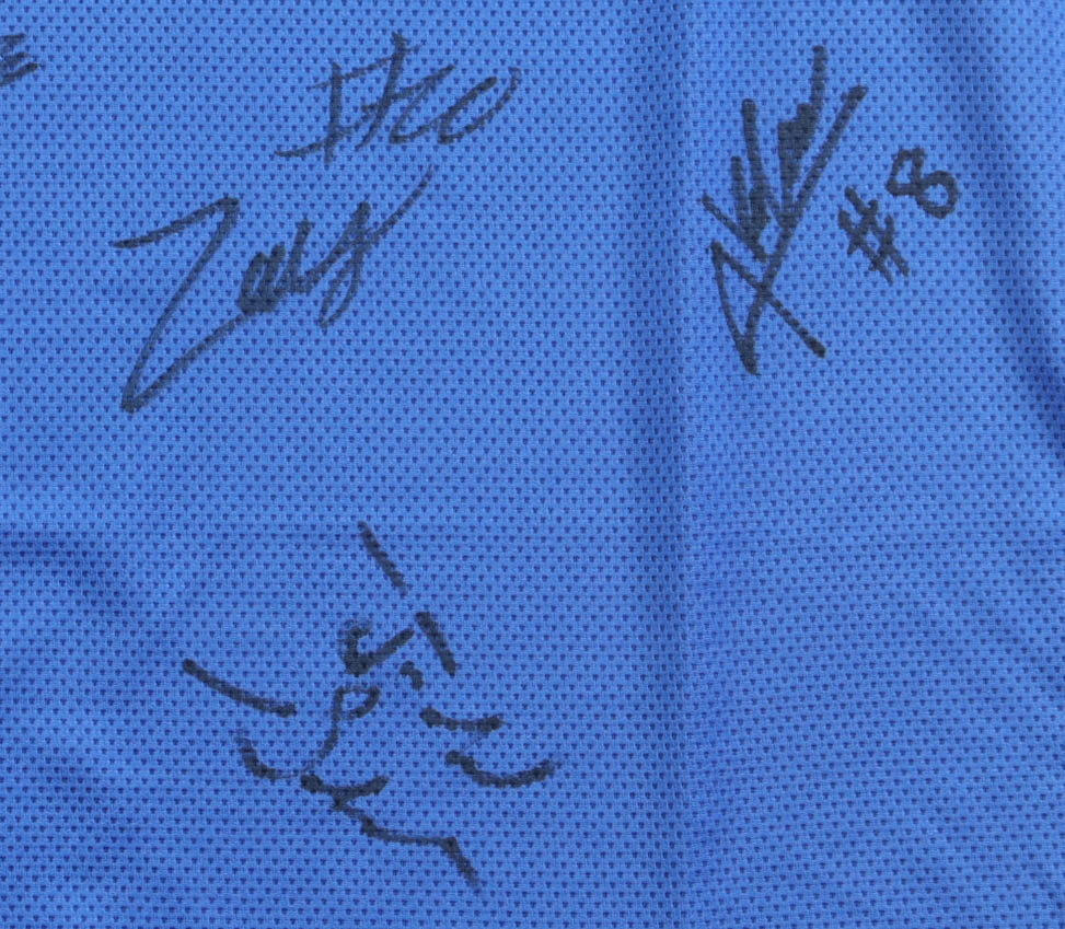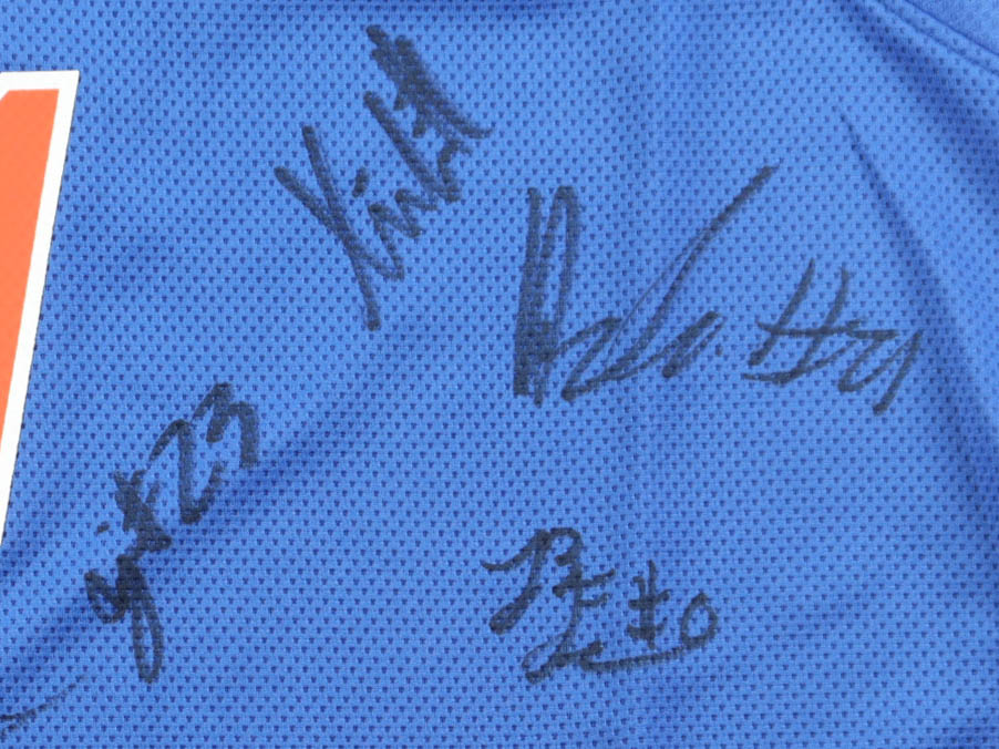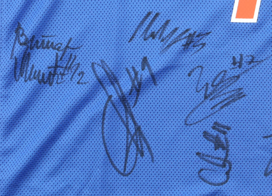 Jordan authentic jersey with everything pressed on, size L. Hand-signed by (15) with Todd Golden, Thomas Haugh, Boogie Fland, Rueben Chinyelu, Alex Condon, Xavian Lee, Urban Klavzar, Isaiah Brown, Micah Handlogten, Alex Lloyd, Alex Kovatchev, CJ Ingram, Vikto Mikic, AJ Brown, and Cooper Josefsberg.