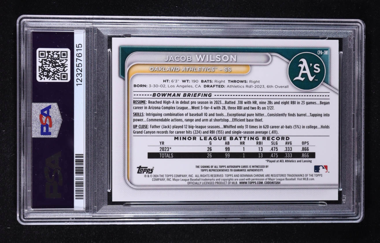 Jacob Wilson 2024 Bowman Chrome Prospect Autographs #CPAJWI (PSA 10)