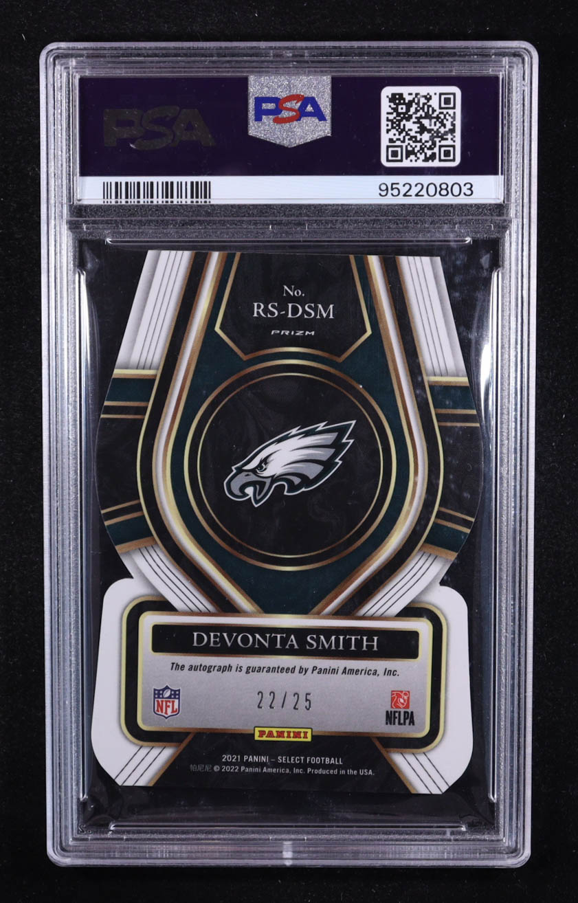 DeVonta Smith 2021 Select Rookie Signatures Prizm Tie Dye Die Cut #10 #22/25 RC (PSA 10)