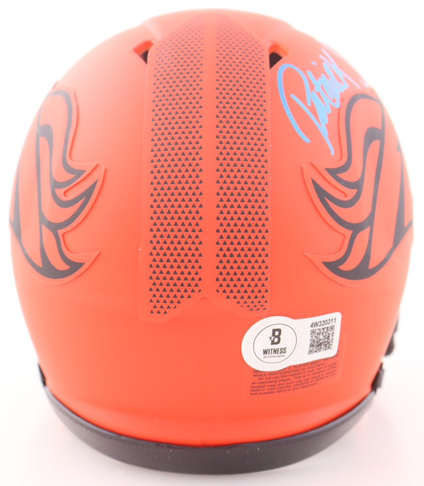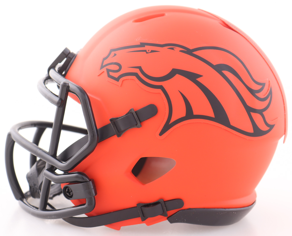 Riddell Denver Broncos Rave Alternate Speed mini helmet has been hand-signed by Patrick Surtain II.
