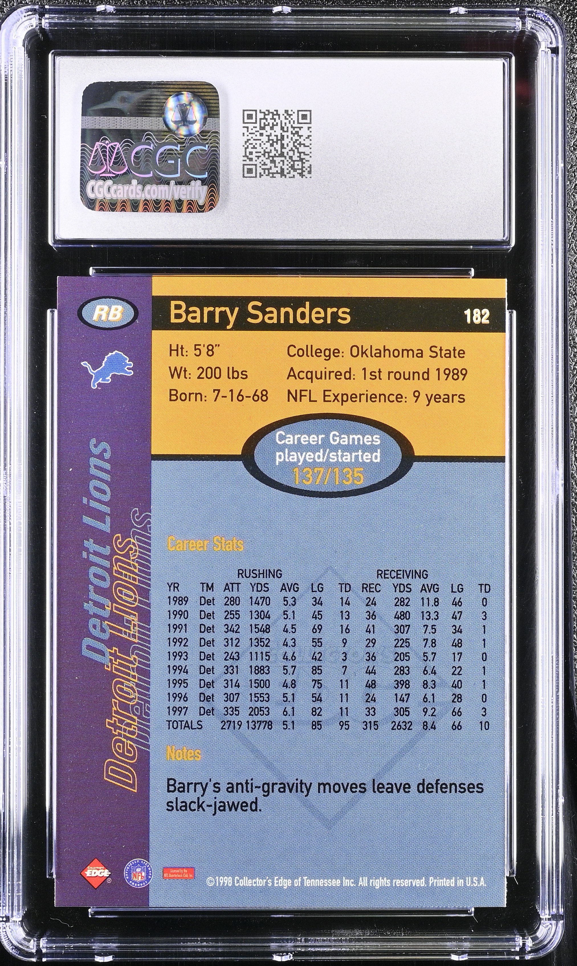 Barry Sanders 1998 Collector's Edge 1st Place #182 (CGC 10)