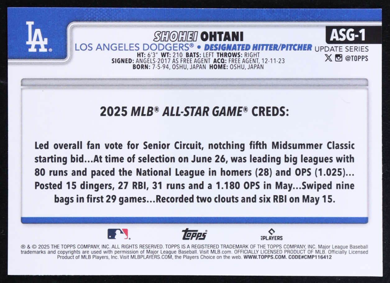 Shohei Ohtani 2025 Topps Update '25 All-Star Game Holo #ASG1