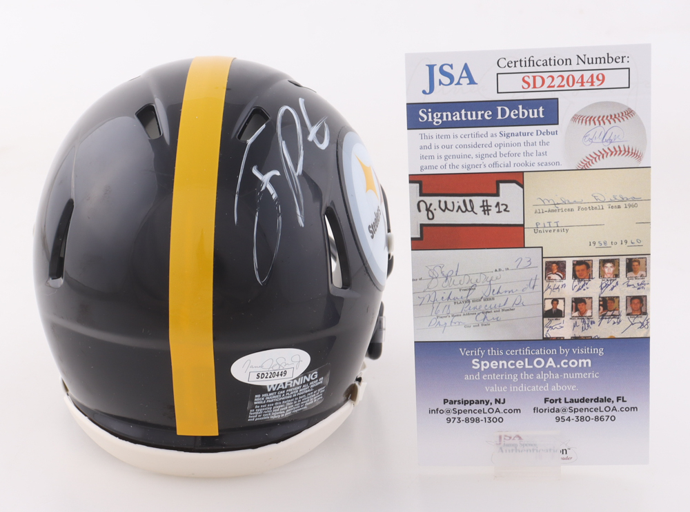 Riddell Pittsburgh Steelers Speed mini helmet has been hand-signed by Joey Porter Jr. Please note, the signature is scuffed.