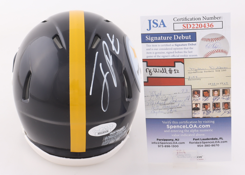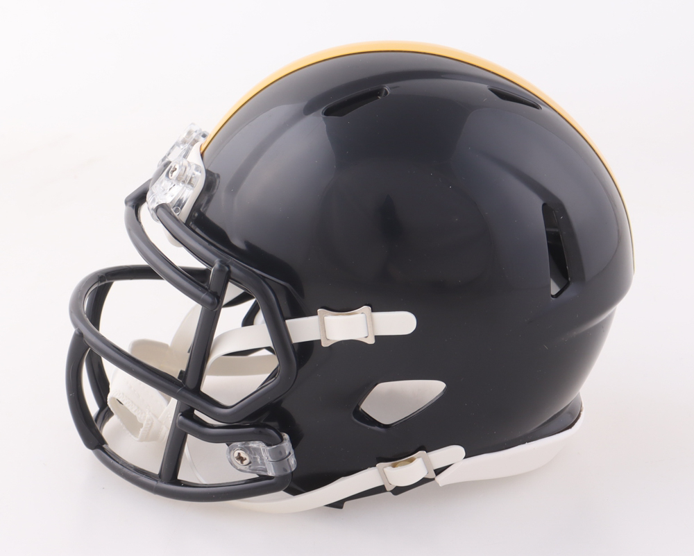 Riddell Pittsburgh Steelers Speed mini helmet has been hand-signed by Joey Porter Jr.