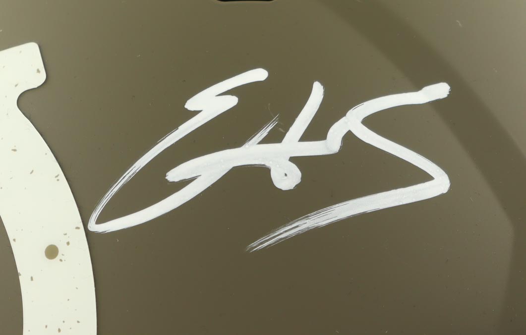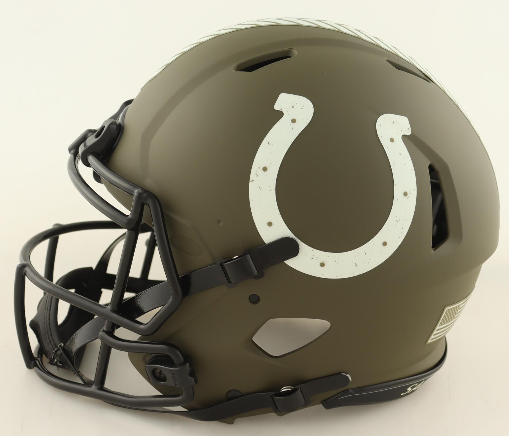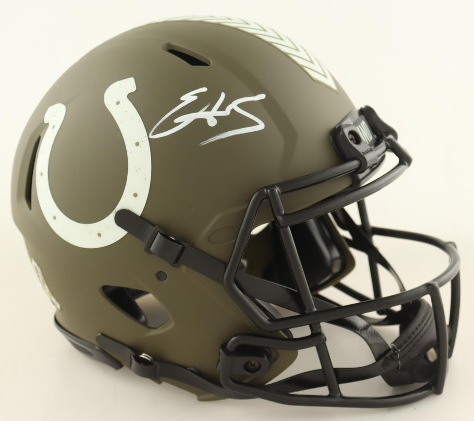 Riddell Indianapolis Colts full-size authentic on-field salute to service alternate speed helmet. Hand-signed by Edgerrin James (HOF).