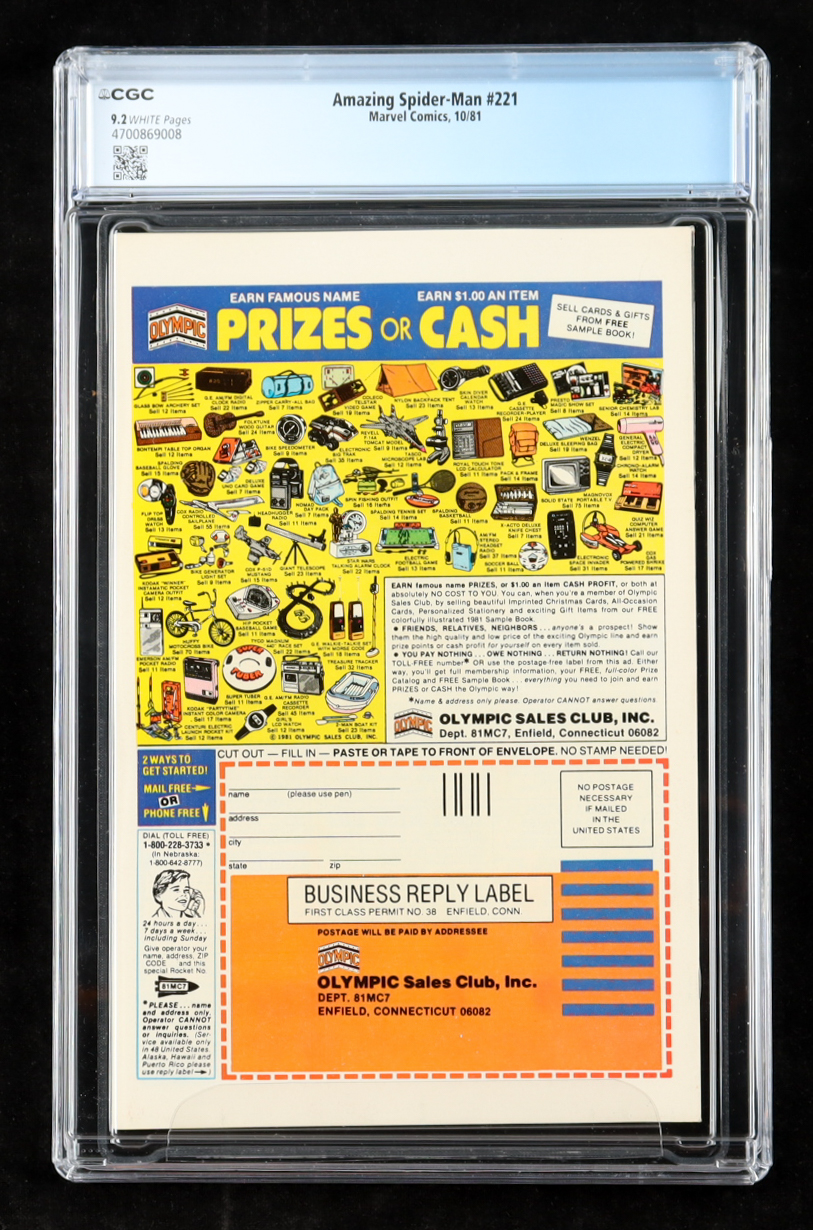 1981 "The Amazing Spider-Man" #221 Marvel Comic Book (CGC 9.2)