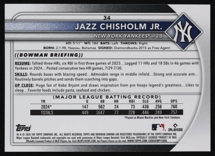 Jazz Chisholm Jr. 2025 Bowman Chrome Aqua Geometric Refractors #34 #108/125