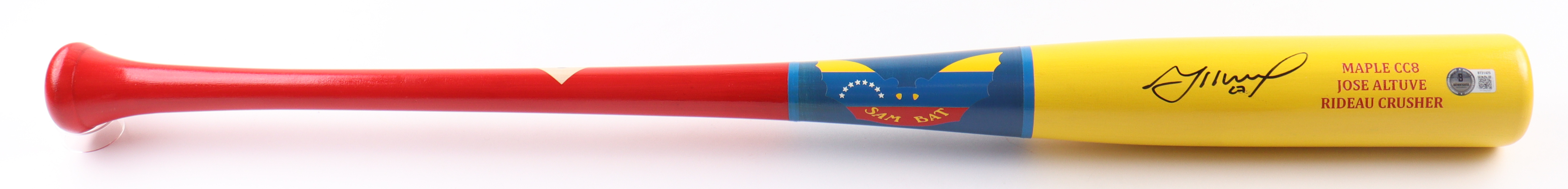 Sam Bat Co. baseball bat. Hand-signed by Jose Altuve (Houston Astros). Please see photos for more details regarding the condition of the item.