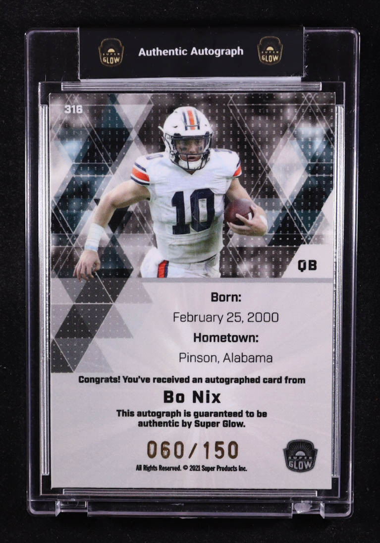 Bo Nix 2021 Super Glow Sports Inaugural Edition Autographs Blue Glow #316 #060/150