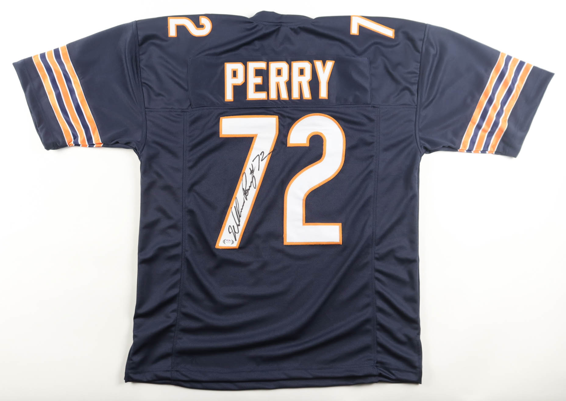 Custom jersey with everything sewn on, size XL. Hand-signed by William Perry.