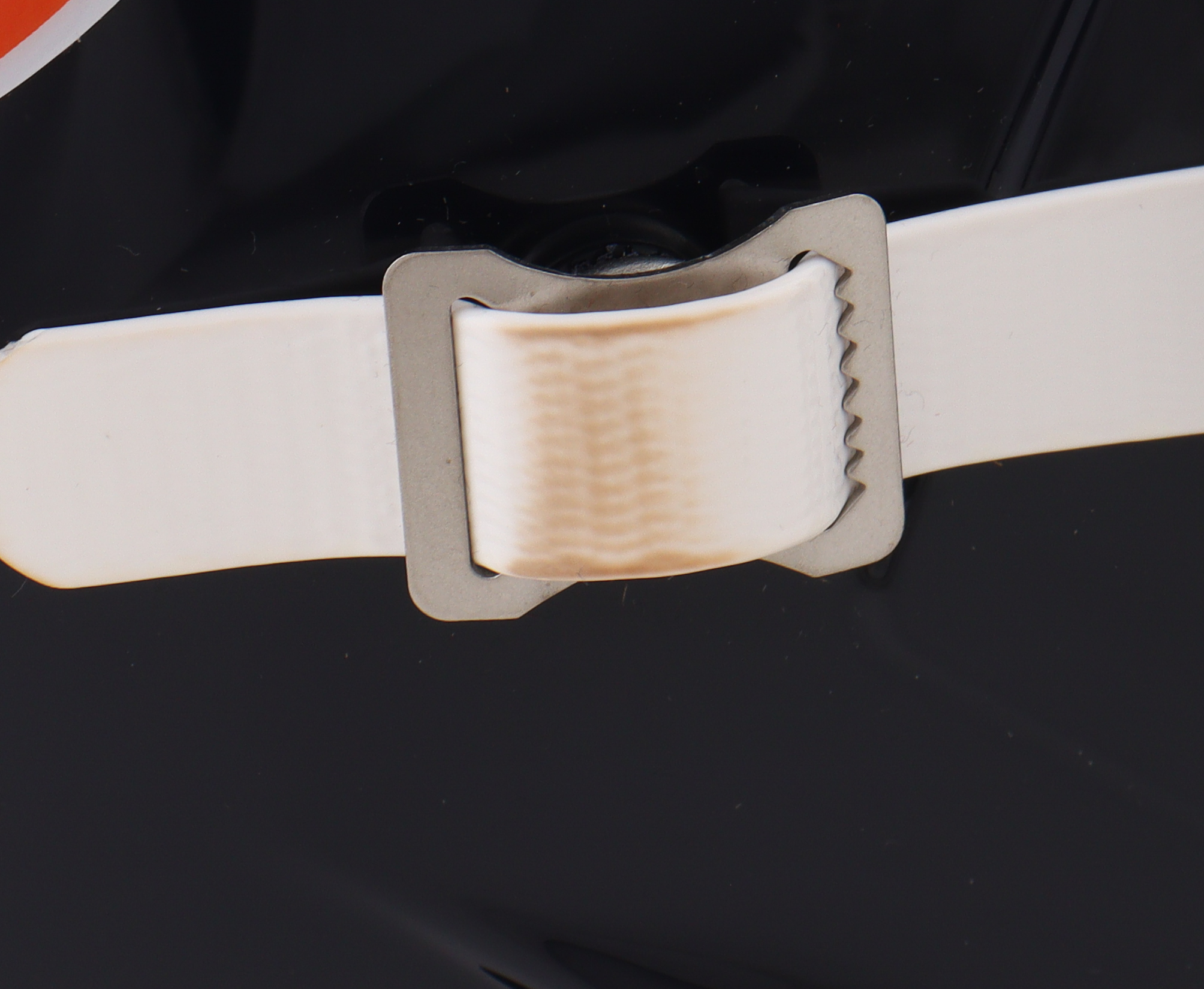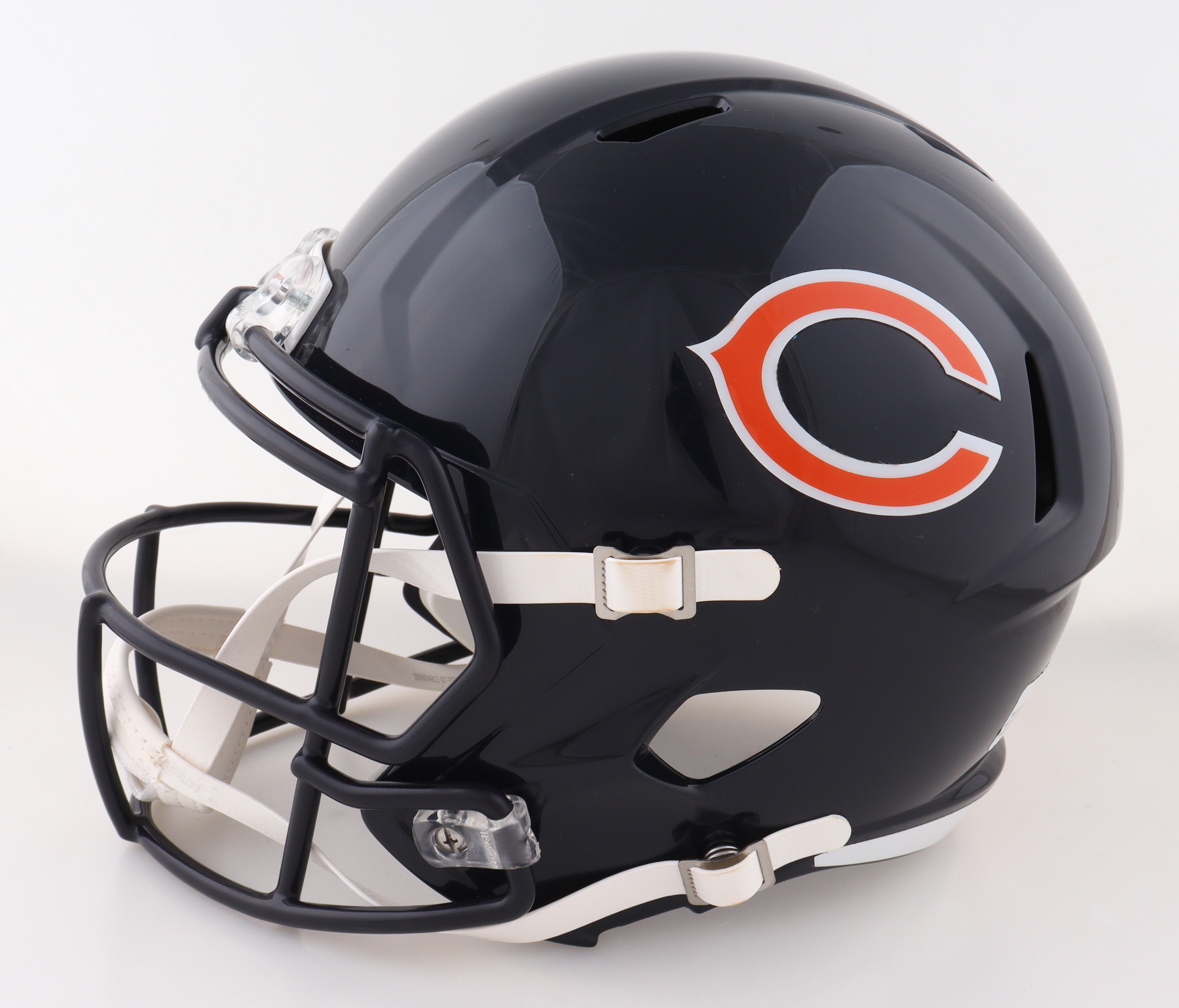 Riddell Chicago Bears Full-Size Speed Replica Helmet. Hand-signed by Jim McMahon. Please see photos for details regarding the condition of the item as one of the helmet straps is stained.