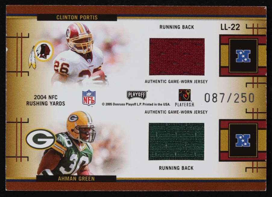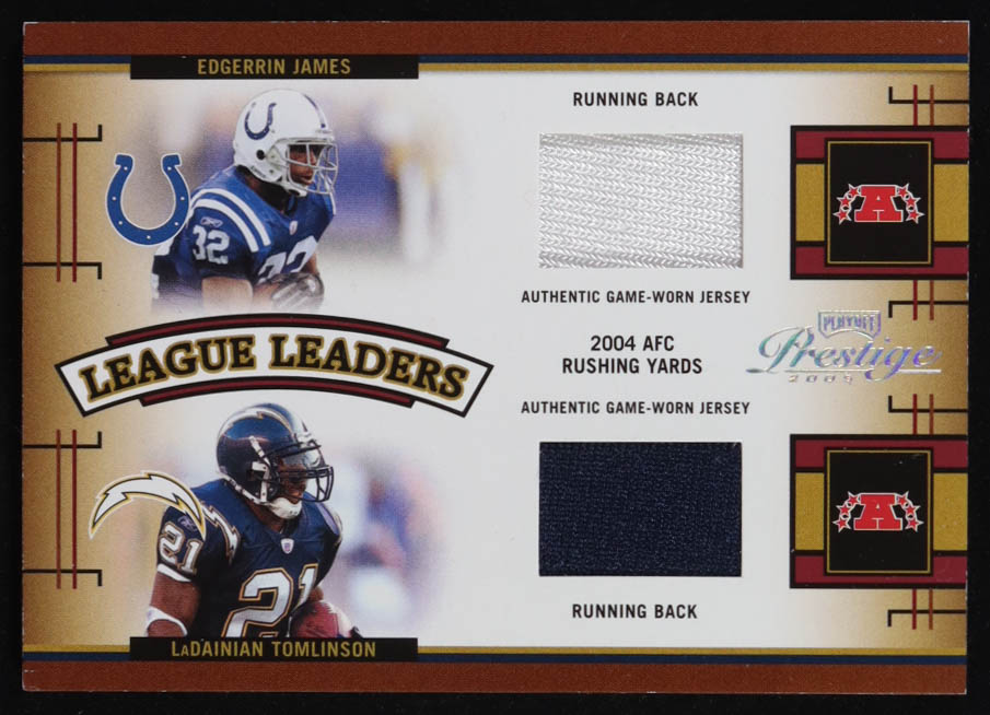 2005 Playoff Prestige League Leaders Jerseys Game-Worn #LL22 Edgerrin James / LaDainian Tomlinson / Clinton Portis / Ahman Green