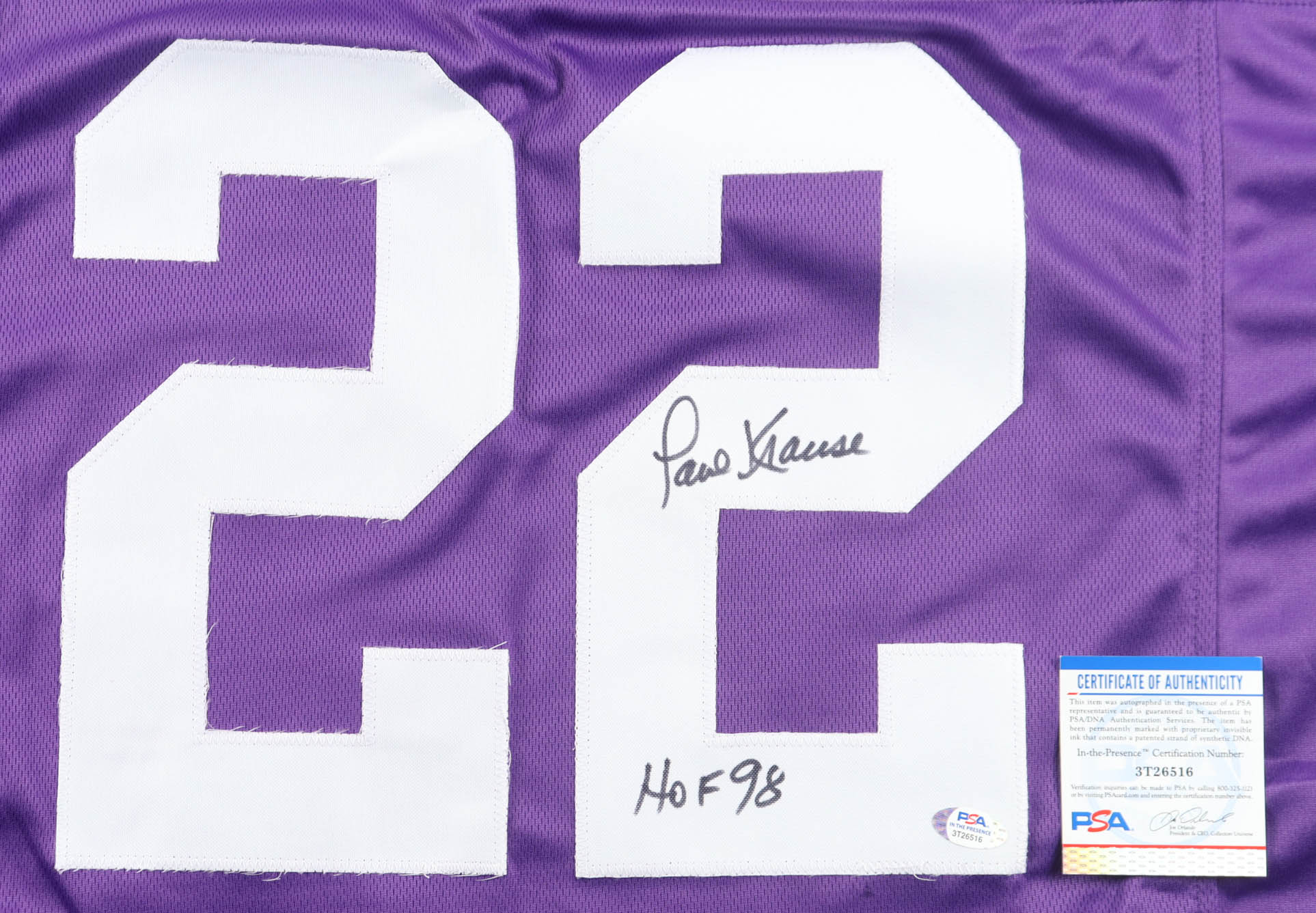 Paul Krause Signed Jersey Inscribed "HOF 98" (PSA)