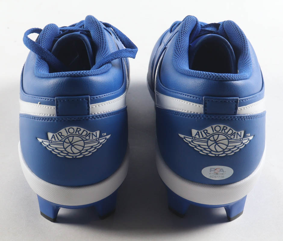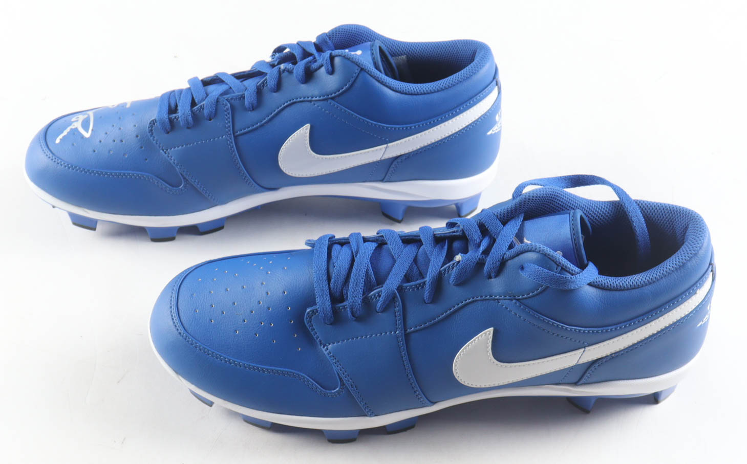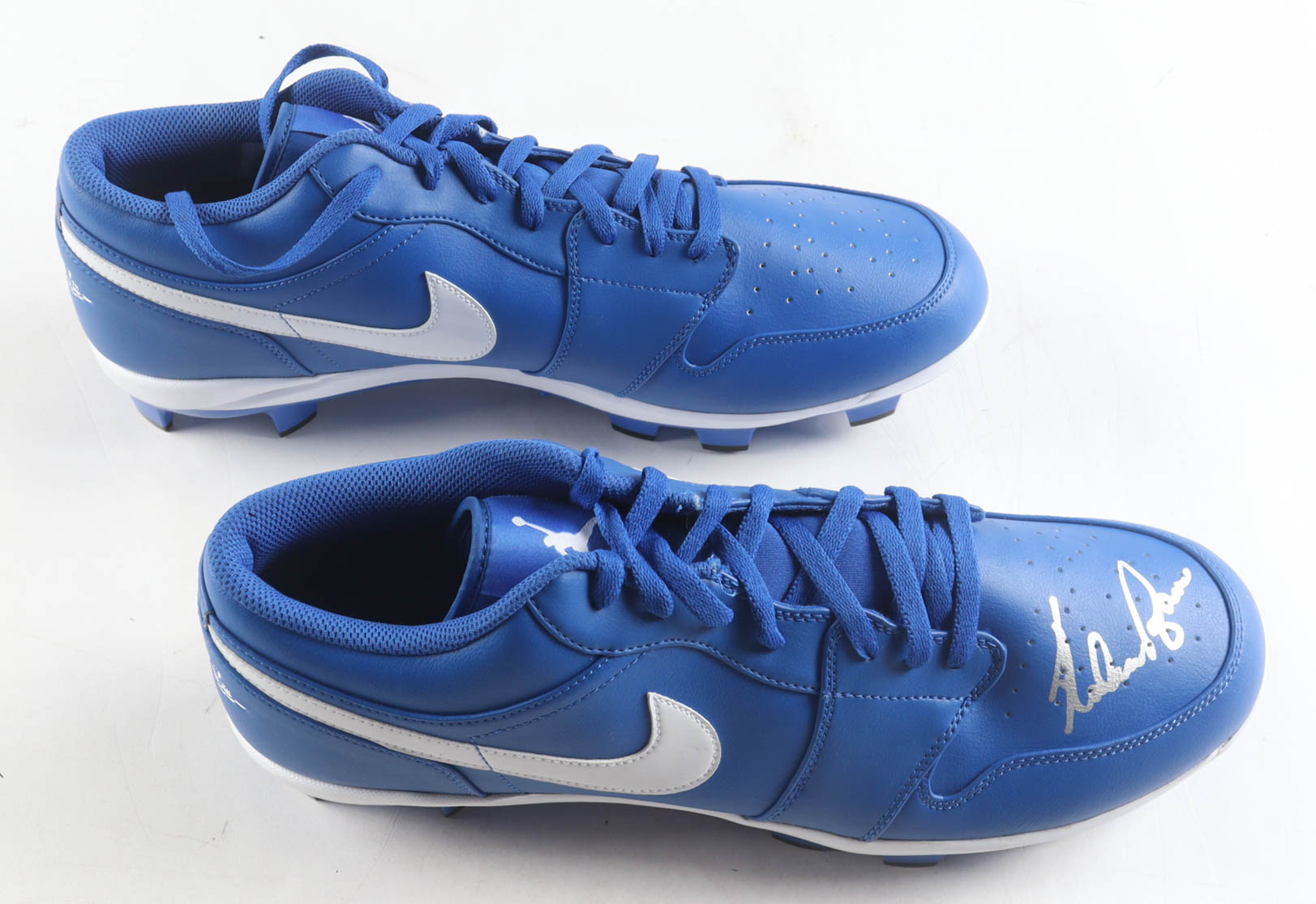 Air Jordan 1 Retro MCS Low baseball cleats, size 16. The right shoe has been hand-signed by Nolan Ryan (Houston Astros, HOF).