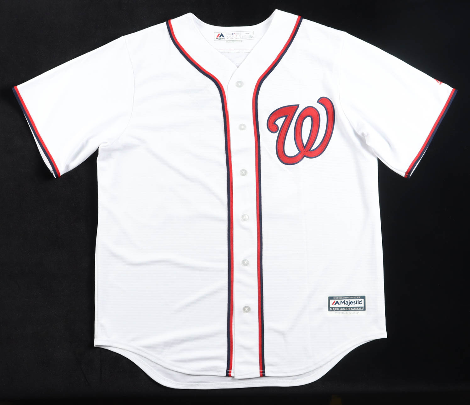 Majestic authentic jersey with everything sewn on, size L. Hand-signed by Juan Soto.