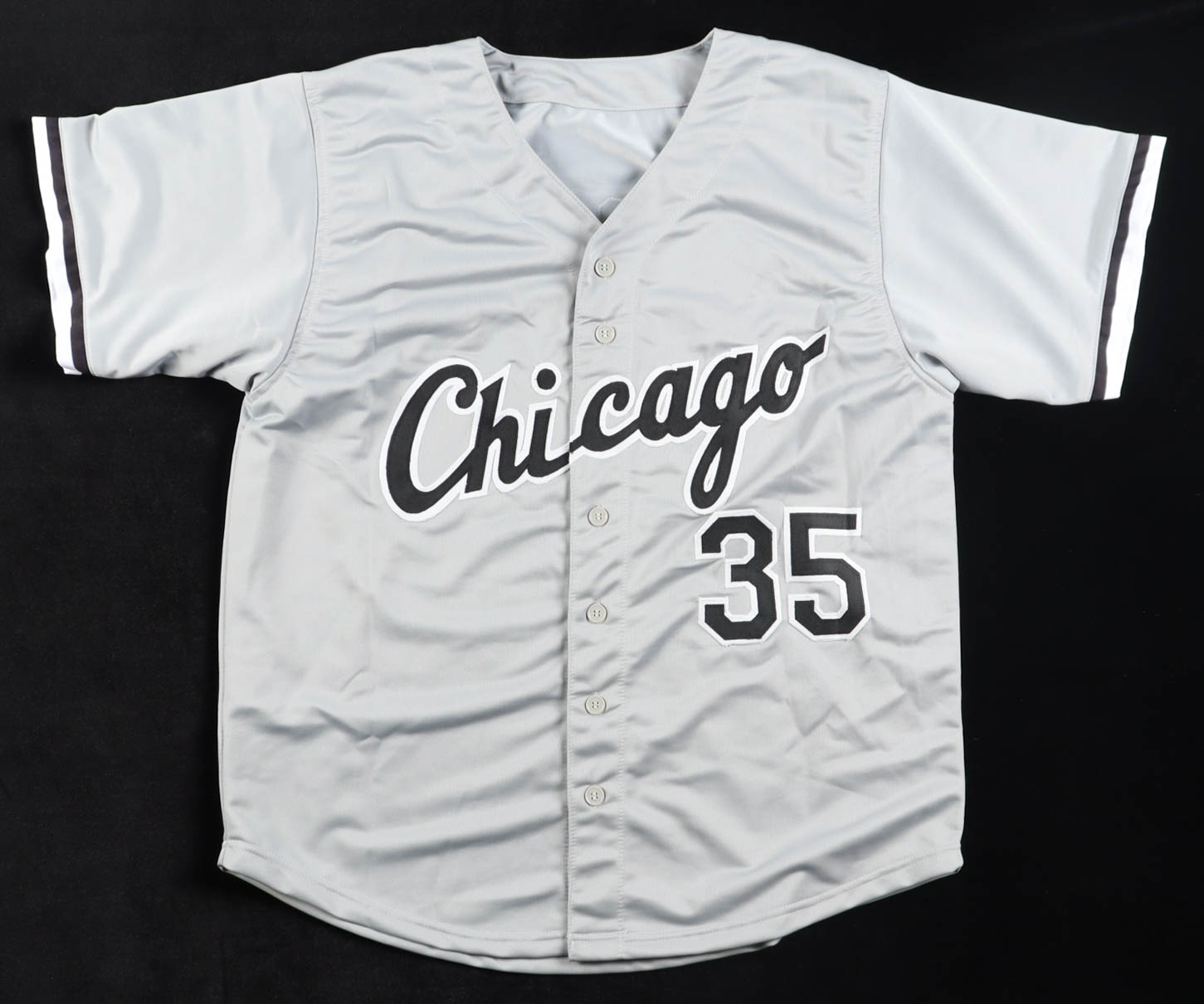 Custom jersey with everything sewn on, size XL. Hand-signed by Frank Thomas (Chicago White Sox, HOF).