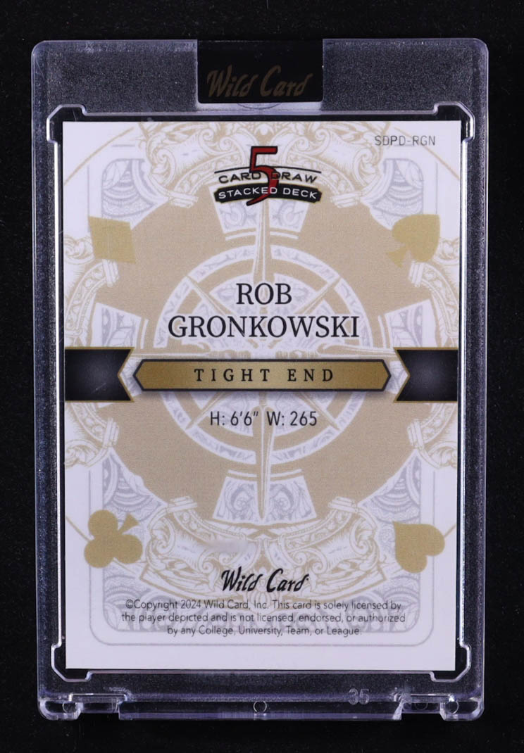 Rob Gronkowski 2024 Wild Card 5 Card Draw Stacked Deck 2-Up Queen Of Diamonds Gold Lazer #SDPC-RGN #1/1