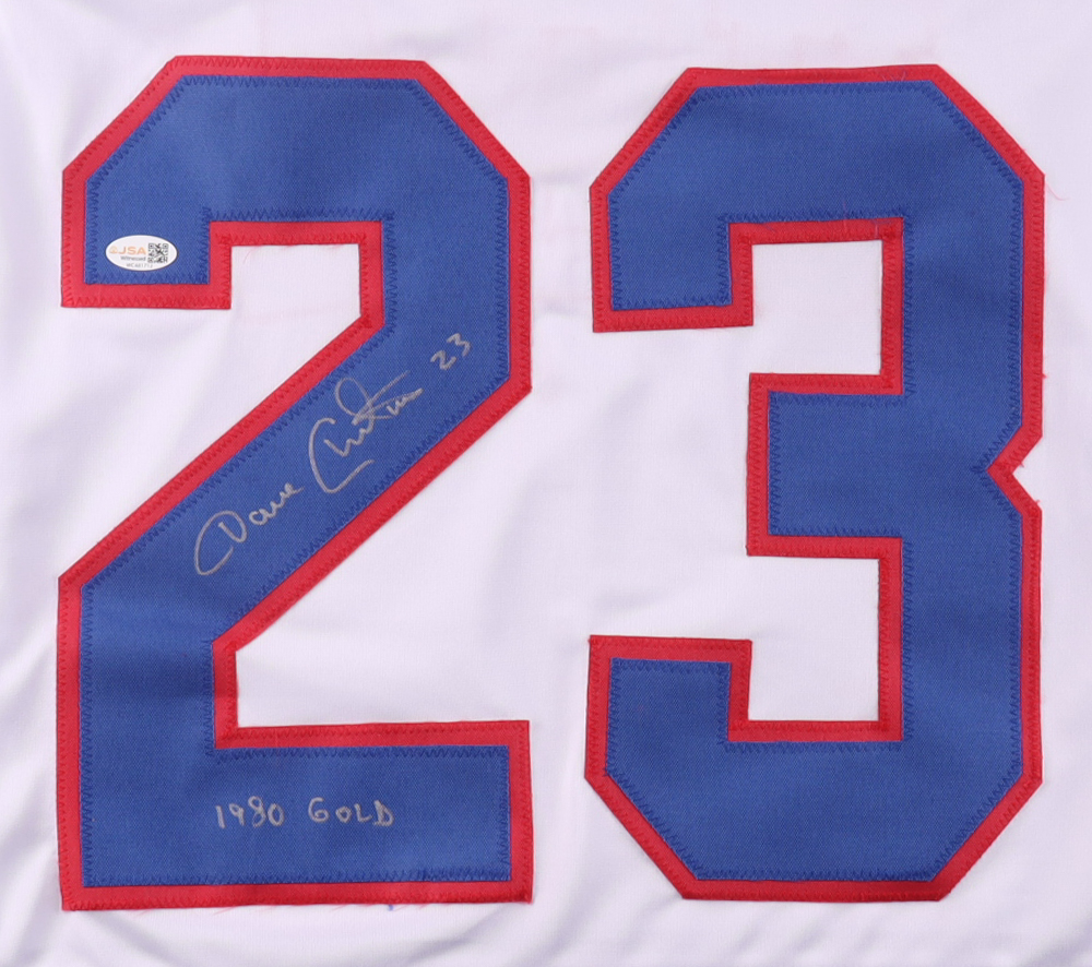 Dave Christian Signed Jersey Inscribed "1980 Gold" (JSA)