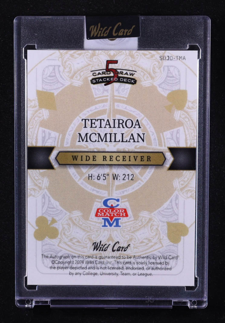 Tetairoa McMillan 2024 Wild Card 5 Card Draw Stacked Deck Autographs Queen Of Diamonds Color Match Rainbow Foil #SDJD-TMA #1/1 RC