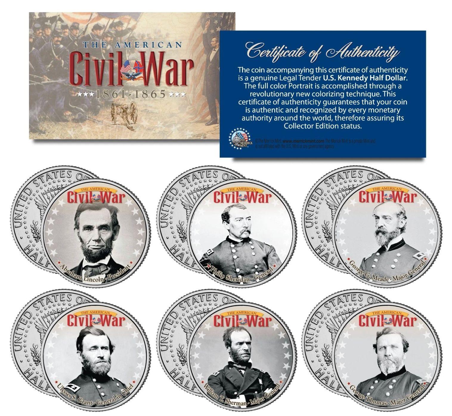 American Civil War North Union Leaders Set of (6) JFK Half Dollars Coins