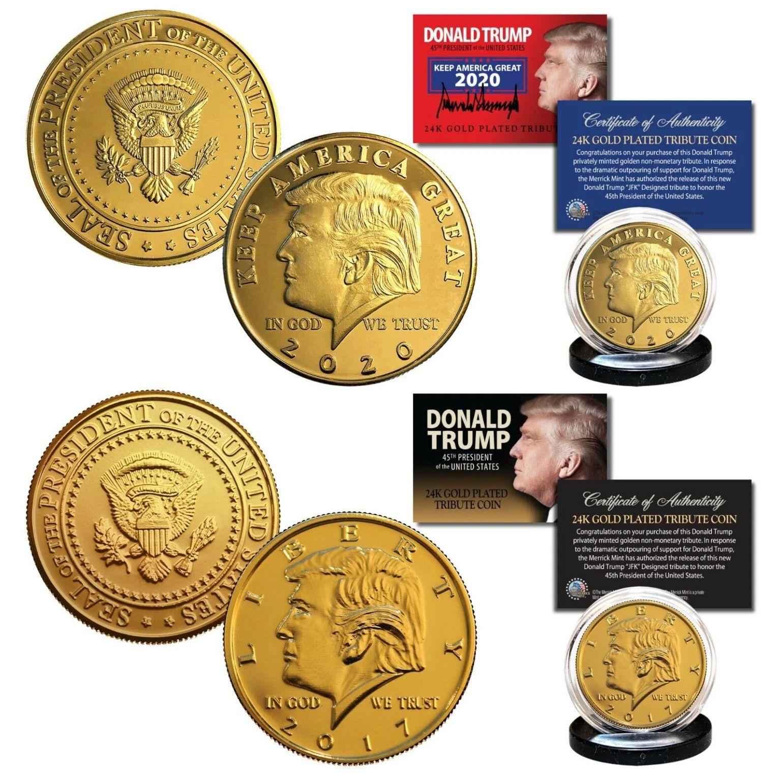 Donald Trump Set of (2) 2017 & 2020 45th President 24K Gold Clad Medallion Coins