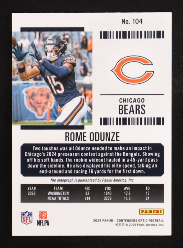 Rome Odunze 2024 Panini Contenders Optic Rookie Ticket Autographs #104 RC