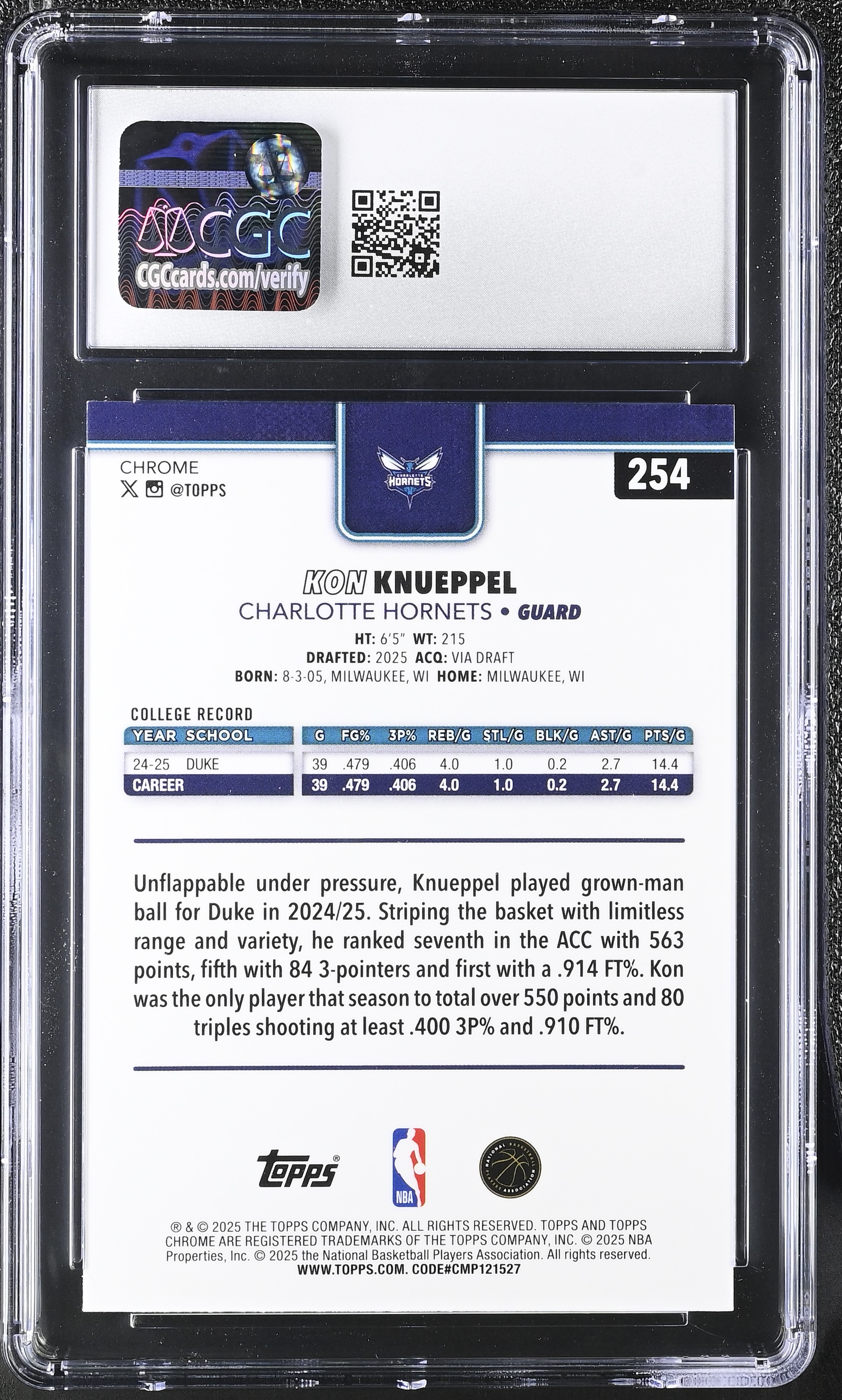 Kon Knueppel 2025-26 Topps Chrome X-Fractor #254 RC (CGC 8.5)