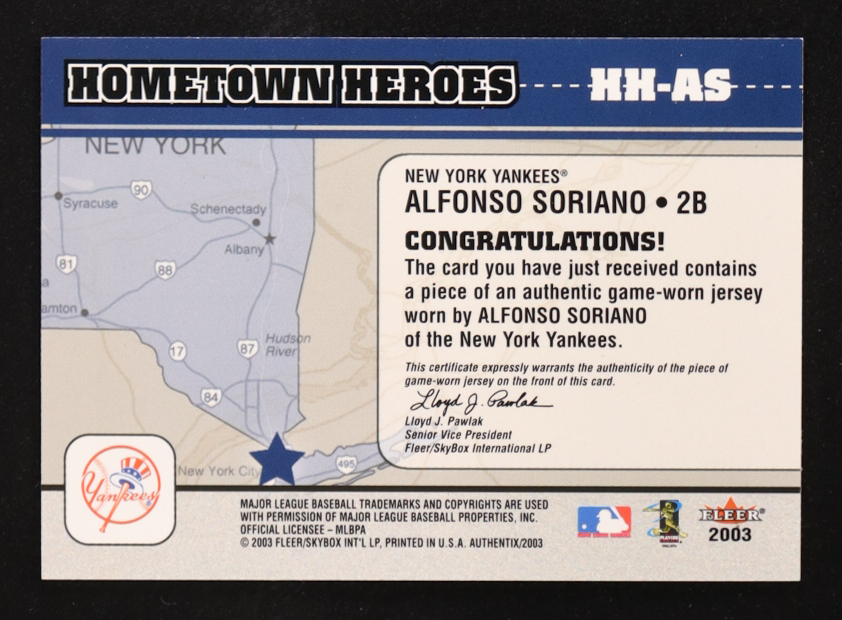 Alfonso Soriano 2003 Fleer Authentix Hometown Heroes Game-Worn Jsy Memorabilia #AS