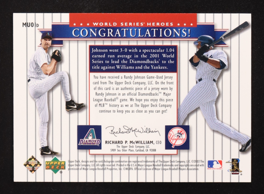 Randy Johnson Jersey / Bernie Williams 2002 Upper Deck World Series Heroes Classic Match-Ups Game-Used Memorabilia #MU1d