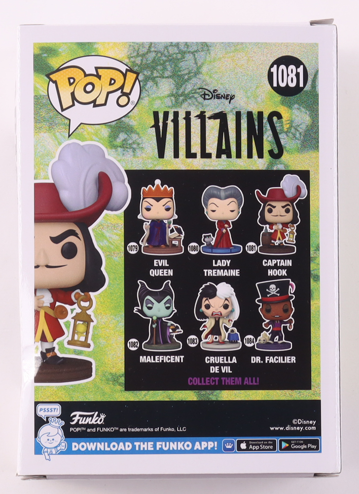Funko Pop! Vinyl Figure measures approximately 4" tall and has been hand-signed on the packaging by Dustin Hoffman (Captain Hook). Please note, the window has been swapped and the bottom right corner is torn.