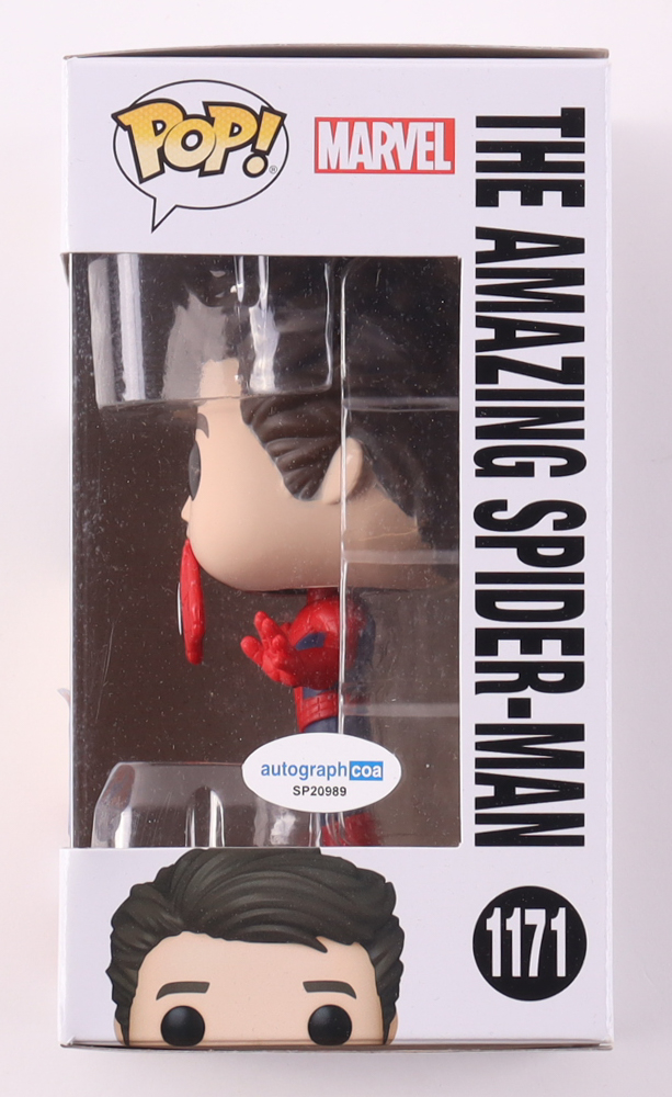 Bobble-Head vinyl figure measures approximately 4" tall and is hand-signed on the packaging by Andrew Garfield (Peter Parker / Spider-Man). Please note, item has been window-swapped.