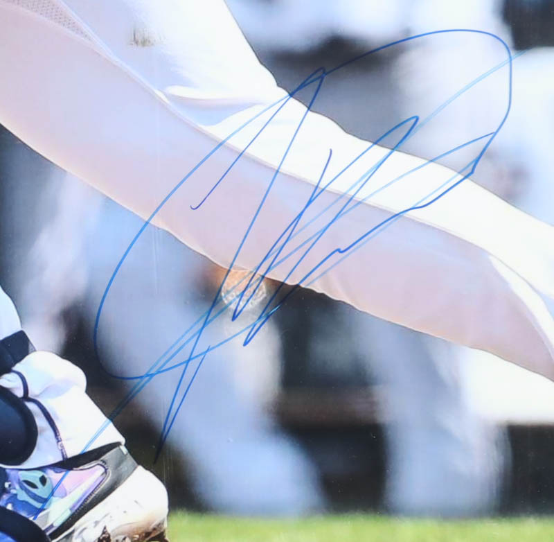 Custom frame measures 26" x 38" in size that features a photo that has been hand-signed by Jasson Domínguez (New York Yankees). Please see photos for more details regarding the condition of the item.