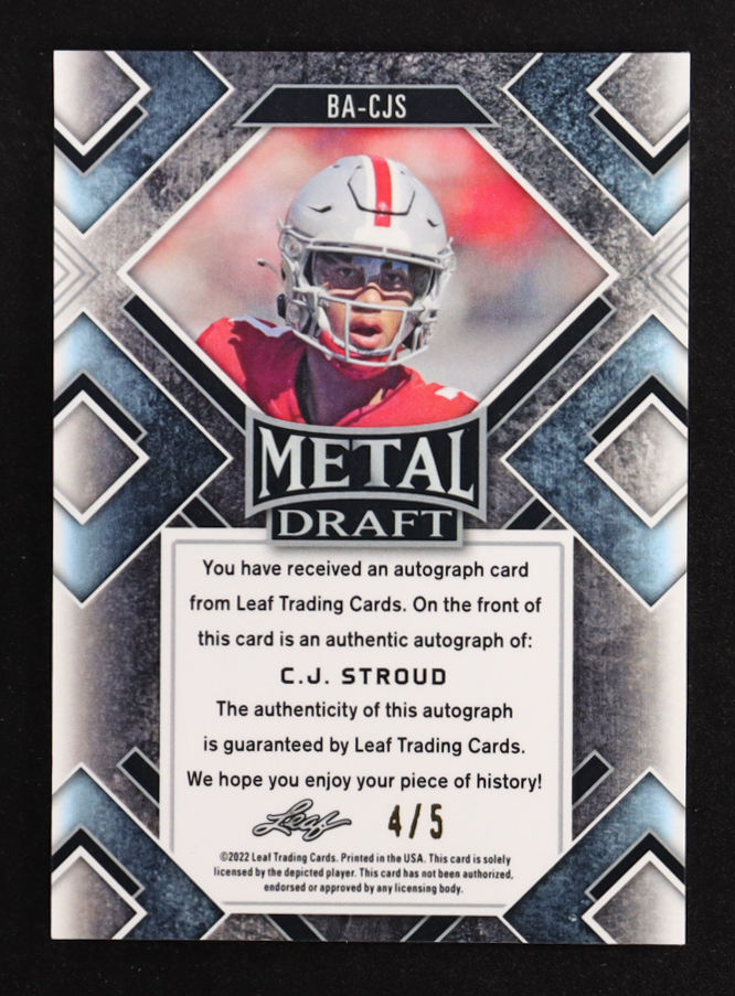 C.J. Stroud 2022 Leaf Metal Draft Wave Zebra #BACJS #4/5 RC