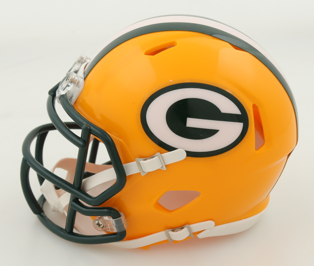 Riddell Green Bay Packers speed mini helmet has been hand-signed by Josh Jacobs.