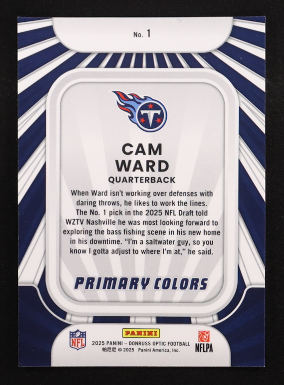 Cam Ward 2025 Donruss Optic Rookie Primary Colors #1 RC