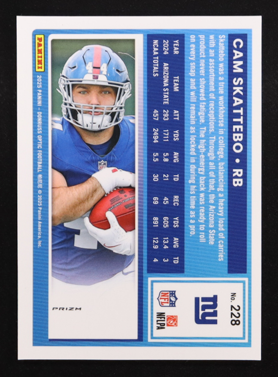 Cam Skattebo 2025 Donruss Optic Green Hyper #228 RR RC