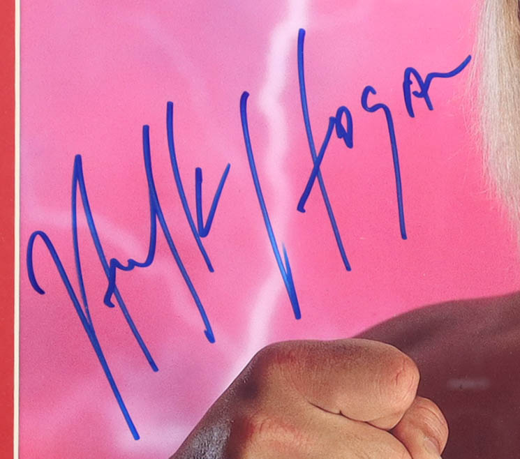 Custom frame measures 22" x 26" in size. Photograph is hand-signed by Hulk Hogan (d. 2025).