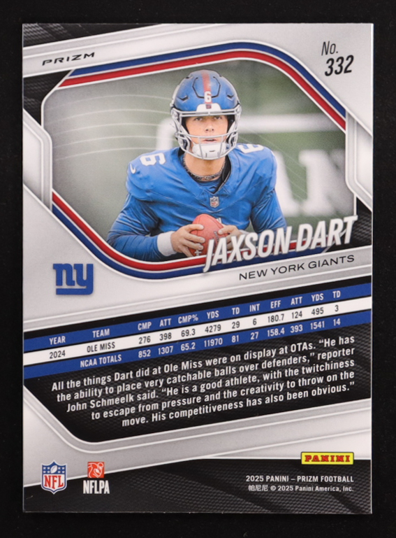 Jaxson Dart 2025 Panini Prizm Prizms White Disco #332 RC