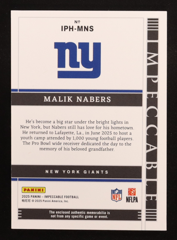 Malik Nabers 2025 Panini Impeccable Immense Patches #17 #33/49