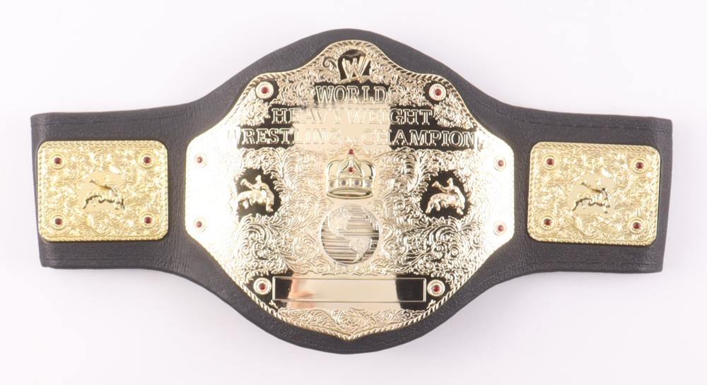 Replica Championship WWE replica toy belt measures approximately 40" in length and has been hand-signed by Ric Flair (HOF).
