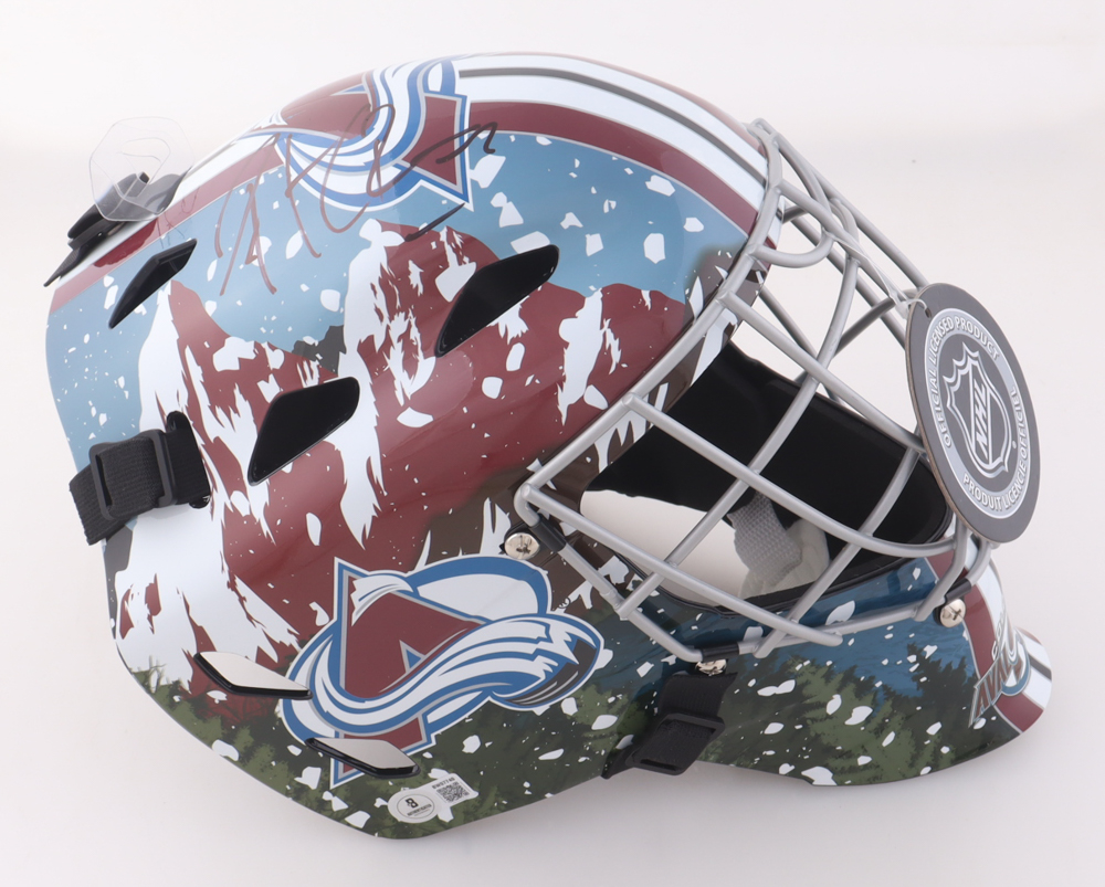 Franklin Colorado Avalanche full-size Franklin replica goalie helmet has been hand-signed by Patrick Roy (HOF).