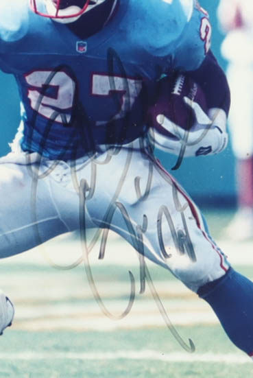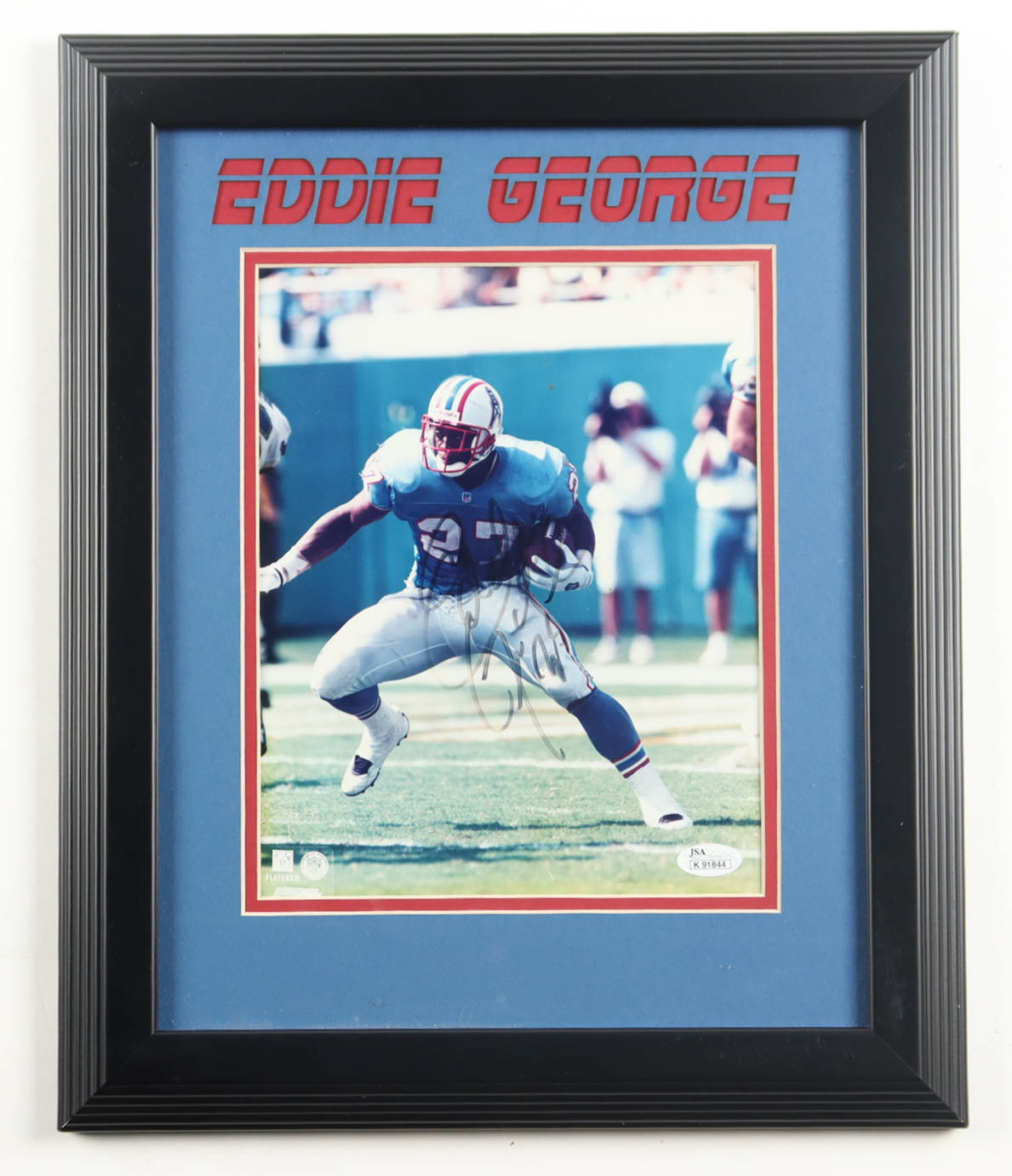 Custom frame measures approximately 13.5" x 16.5" in size and features a photo that has been hand-signed by Eddie George (Houston Oilers).