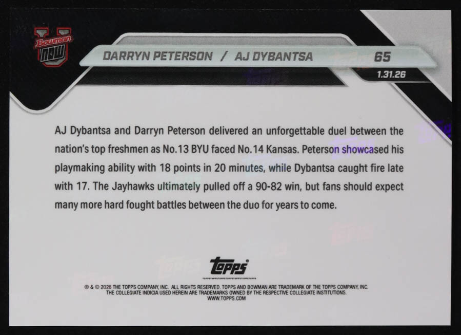 Darryn Peterson / AJ Dybantsa 2025-26 Bowman University Now #65